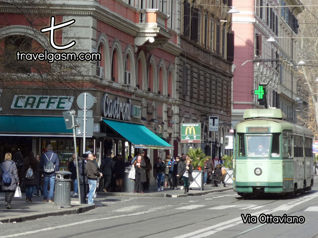 - Via della Conciliazione - This is the main street heading into Vatican City. It is a fairly large street — and one that is rather unpleasant on foot — so we instead would recommend walking on Via Ottaviano, but Via della Conciliazione is a nice photo op, particularly in the evening when the Vatican is closed and most of the tourists and their noisy, fume-spewing tour buses are long gone.